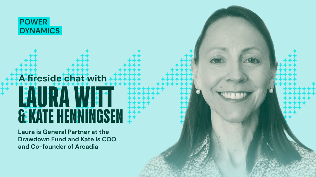 That’s just one of the reasons I was so excited to talk more to Laura, who is also an investor and Board Observer in Arcadia. Neither of us expected to land in climate work. Laura planned to work in policy and I started my career as a corporate lawyer. Yet here we are. I helped found a major climate tech company, and Laura helps companies (including Arcadia!) build innovative, impactful climate solutions. In an industry where gender representation isn’t exactly equal — according to a report from PwC, just 15% of climate tech venture capital funding goes to companies with at least one female founder, and women made up less than 25% of the energy industry workforce as of 2019 — our paths are a little unusual.